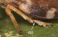 7. Hind tibia with one to three rows of spines along entire length (a) (NOTE: these are poorly developed in Ledrinae and Ulopinae - see key below)